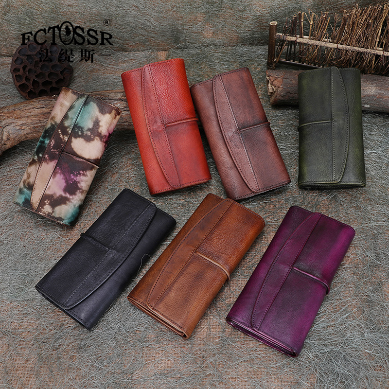 60代女性におすすめの、本革を使用した多彩なカラー展開が魅力の長め二つ折り財布です。