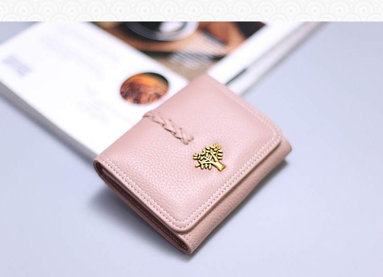 表面には繊細な編み込みデザインと樹木をモチーフにした金色の装飾金具をあしらい、上品で洗練された印象に仕上げました。