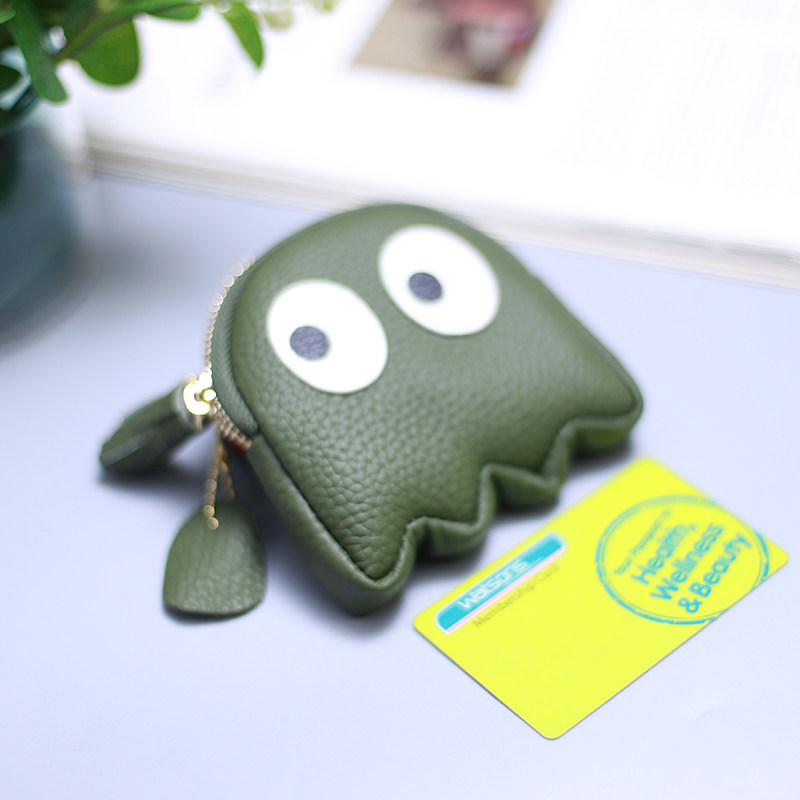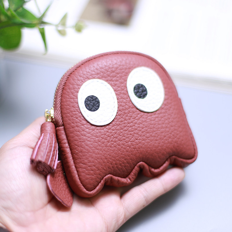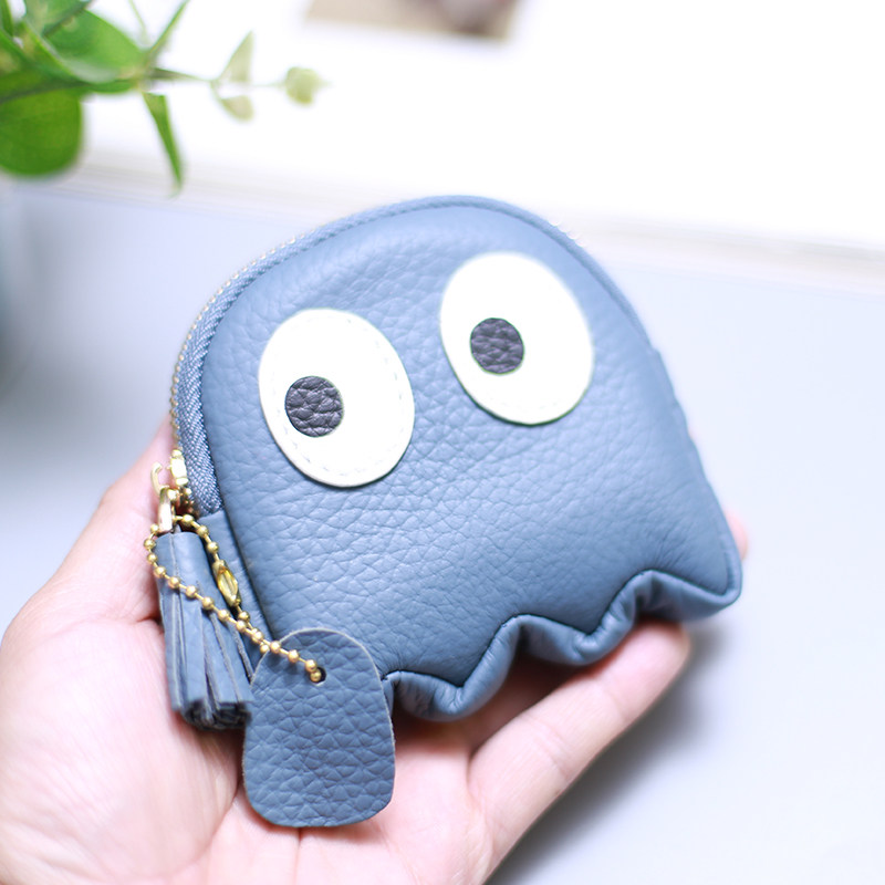愛らしいおばけの形をした遊び心溢れるレディース二つ折り財布です。 立体的なフォルムと大きな目のデザインが特徴的で、持つだけで笑顔になれる個性的なアイテムです。 ミニサイズながらファスナー開閉でしっかり収納でき、タッセル付きで開閉もスムーズです。 手のひらサイズのコンパクトさで、バッグの中でもかさばらず持ち運びに便利です。 型押しレザー風の質感が高級感を演出し、カジュアルスタイルのアクセントにも最適です。