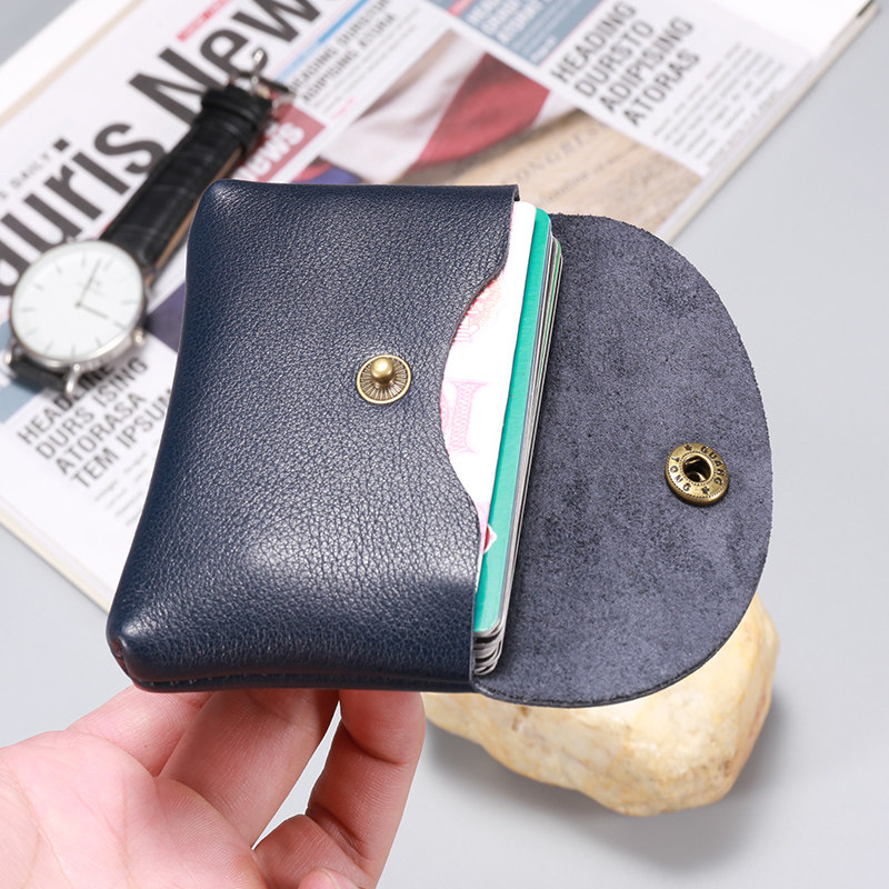 上質な本革を使用したレディース二つ折り財布です。 コンパクトなミニサイズながら、カードや紙幣をしっかり収納できる実用性の高いデザインとなっています。 フラップ部分はスナップボタン式で開閉が簡単、丸みを帯びた優しいフォルムが手に馴染みます。 小さなバッグにもすっぽり入るサイズ感で、普段使いから特別な日まで幅広くお使いいただけます。 シンプルで飽きのこないデザインは長くご愛用いただける逸品です。