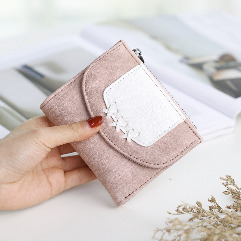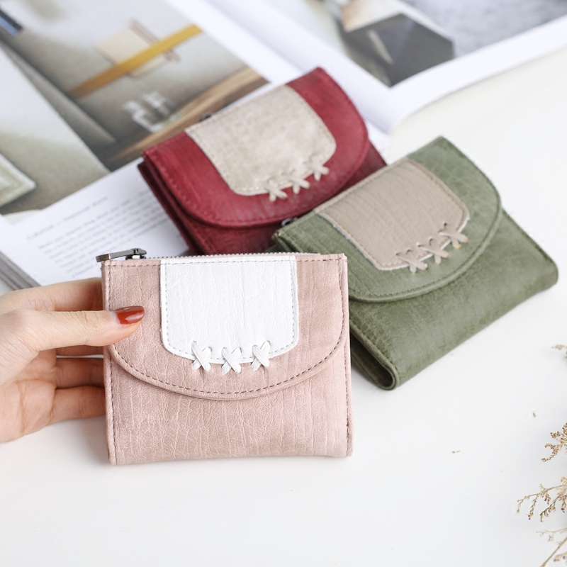 フロントの刺繍ステッチがアクセントになったレディース二つ折り財布です。